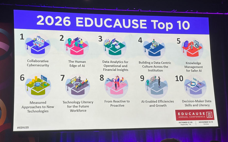 Educause yesterday released its Top 10 list of where higher education is headed in 2026 during the second day of its annual conference, which gathered around 7,500 educational professionals on October 28 -30 in Nashville, Tennessee.