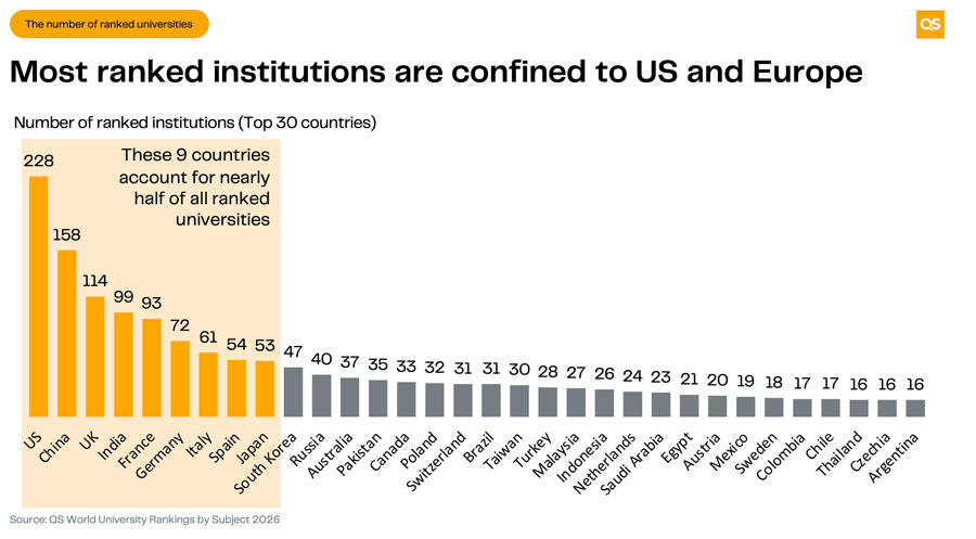 Another remarkable statistic is that just 9 countries account for roughly half of all ranked universities worldwide.